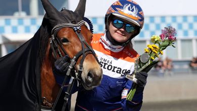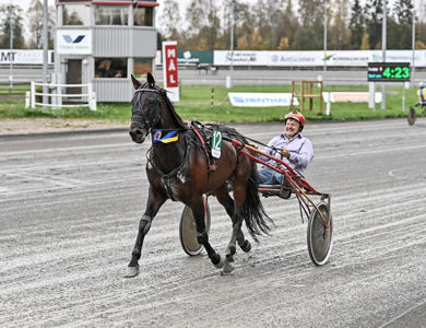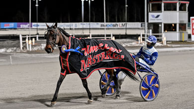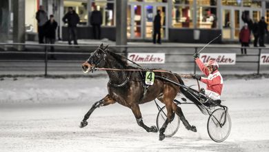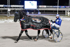 Jonna Irri tog en dubbel när vi körde fredagskvällstrav här på Umåker. Rockforest Tin segrade från ledningen med Mika Forss och K.F.C.Sox (bilden) använde samma recept i Damklubbens Ungdomsserie tillsammans med Erik von Essen. Nu laddar vi för Winter Trot Classic med spel på V85 som vi kör på Juldagen! Välkommen då!