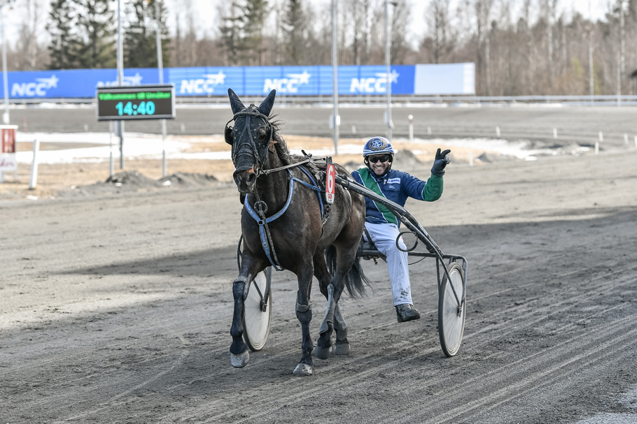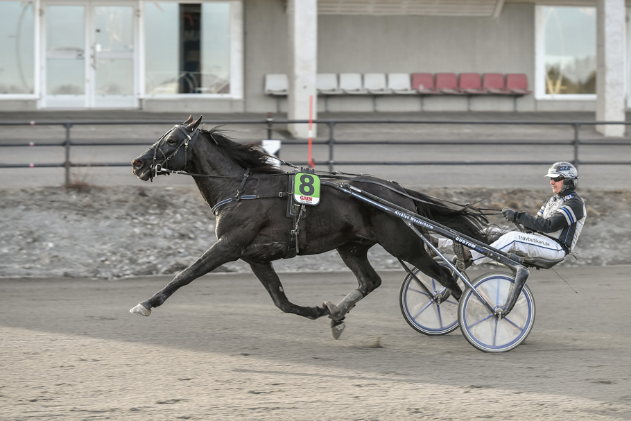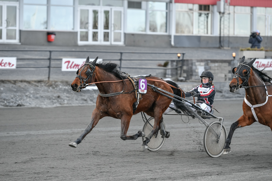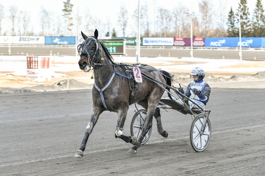 OnTrack He’s Black (Nicklas Westerholm) blev hängande från start och fick backas ner i kön. Gick med i angrepp 400 kvar och avslutade mycket bra. Kopplade greppet i god tid före linjen. Corroded backades ner och hamnade i tredje utvändigt, vilket blev andra ut 1300 kvar. Gick på i tredje 400 kvar och hade grepp, men kunde inte svara vinnaren. Lexington Tooma övertog ledningen efter 500 meter, men fick släppa den samma med 1300 kvar. Kom ut i slutsvängen och fick lucka mellan hästar, men fick nöja sig med tredjeplatsen.