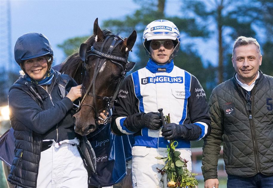 - Jag var jättenöjd med honom i första starten för oss i Boden för någon vecka sedan. Han var tvåa då och hade spår 15 bakom bilen i en spårtrappa och gjorde ett riktigt bra lopp. Tooma fick gå på varvet från mål och kom ner runt sista sväng. Då hade ledarhästen redan ryckt undan och det var inte så mycket att göra åt, han var jättebra som tvåa, berömmer hon.