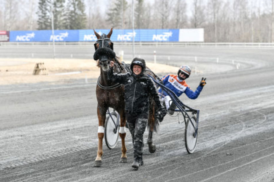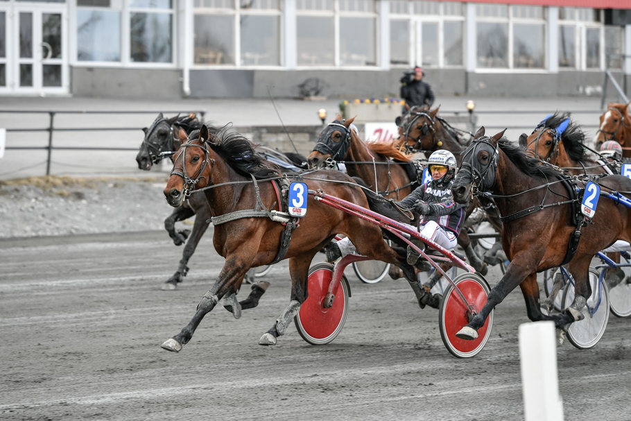 Vanessa F.B. (Daniel Wäjersten/Markus Pihlström) kördes till ledningen in i första sväng. Fick bestämma en bit och kunde enkelt jogga undan till seger. Miss Golden Quick öppnade bra och fick ledarryggen. Hängde på så gott hon kunde till andraplatsen. Global Teardrop blev hängandes i tredjespår i första sväng och kördes fram till utvändigt ledaren varvet kvar. Höll tappert till tredjeplatsen.