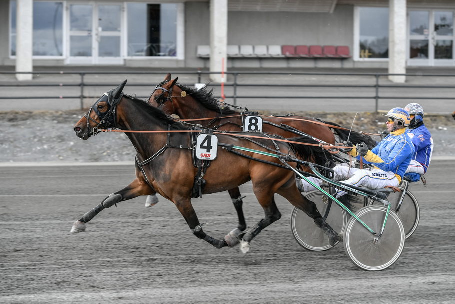 Holter Oda (Ove A Lindqvist/Jerker Bjurman) kom ner i tredje invändigt från sitt bakspår. Fick luckan när de gick in i slutsvängen. Attackerade i spåren när de svängde in på upploppet och på raska fötter hann de fram för att avgöra kort före mål. Sol Varga satt i tredje utvändigt och gick på drygt 700 kvar i tredjespår. Gick en snabb långsida och var utvändigt ledaren när de gick in i slutsvängen. Pressade hårt på ledaren och lyckades hålla sig före denna in i mål, men kunde inte svara den utvändige. Sundbo Nova öppnade raskt spår sjunde spår och tog ledningen redan före svängen. Fick press redan varvet kvar, men stod emot. Ny press när de gick in i slutsvängen. Försvarade innerspåret, men fick ge sig. Bra insats.