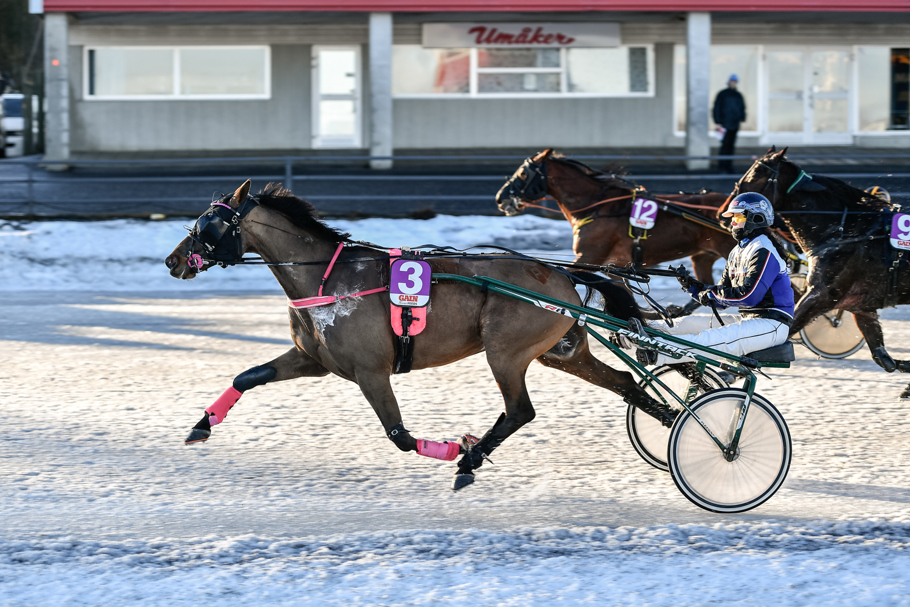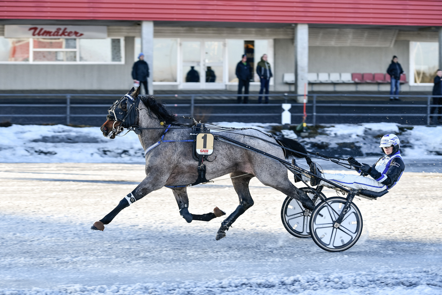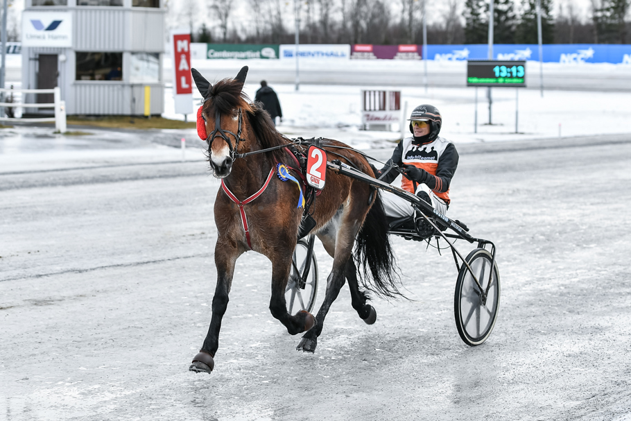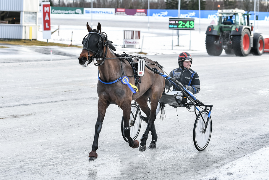 Bodenkusken Jonas Petrén tog karriärens första seger med Mr Sånna (Hanna Olofsson).