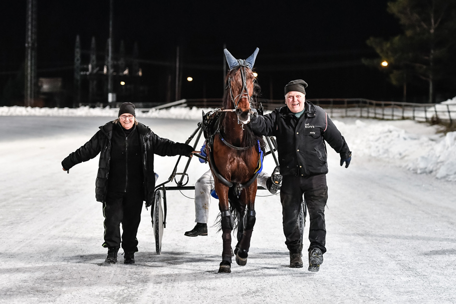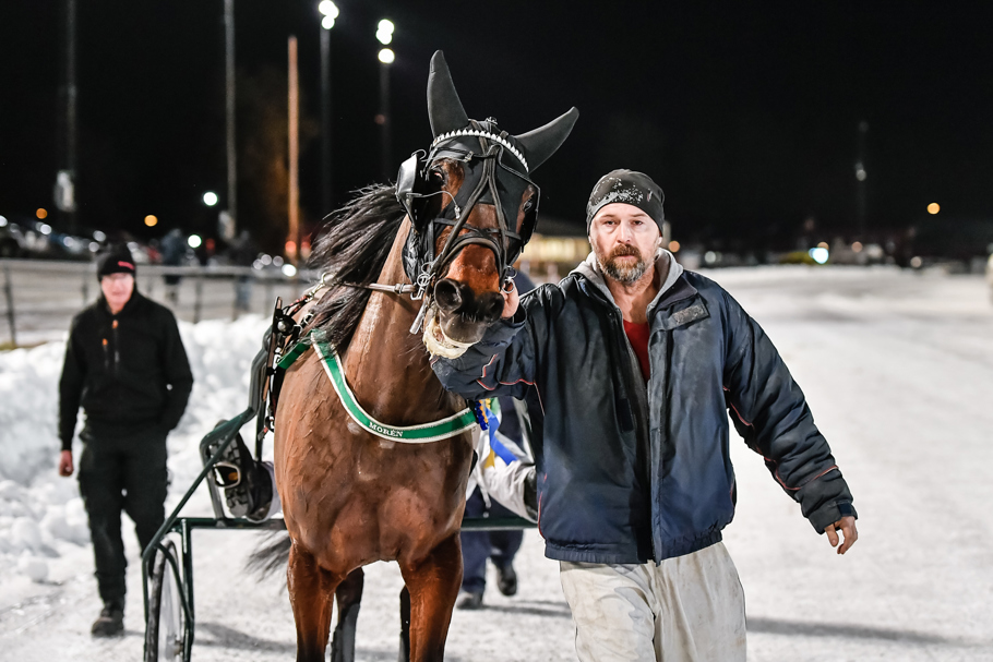 Berglund Svarta (Krister Söderholm/Maria Johansson) tog första segern i 36e försöket. Hon inledde utvändigt ledaren, men övertog täten med ett och ett halvt varv kvar. Kunde gå undan till säker seger före Lill Signe som avslutade bra från andra utvändigt. Favoriten Obelix Rex startade från dubbla tillägg och kom fort i tredjespår på baksidan, men fick en galopp. Kom tillbaka bra till tredjeplatsen.