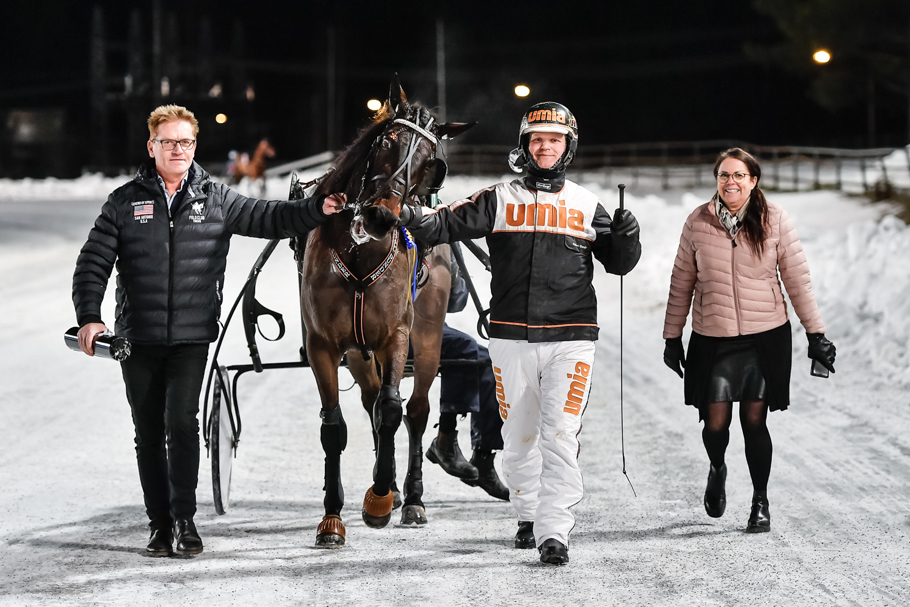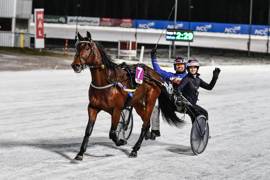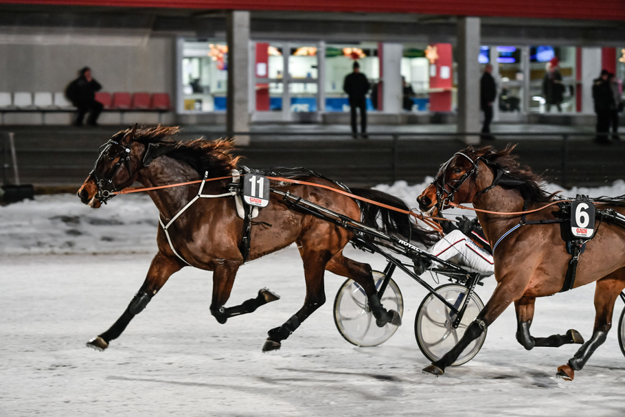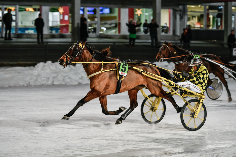 Euforia (Kim Metsälä) kördes invändigt och såg ut att vara fast, men det öppnade sig bra 700 kvar när de galopperade utvändigt. Kom fram bra via tredje i slutsvängen och utmanade ledande Stålville i en upploppsduell, men vinna med en halv längd före just Stålville som övertog ledningen halvvarvet kvar efter en invändig resa. Bra! Hallsta Vinnex klev tidigt på som första häst andraspår en bra bit ner i fältet. Galopperade med 700 meter kvar, men ställde sig och kom tillbaka till en tredjeplats.