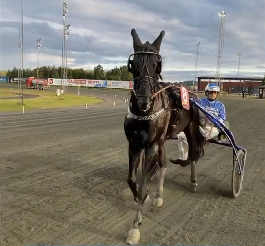 Dante Godiva hade spår längst ut bakom bilen och öppnade bra för Samu Sundqvist som landade utvändigt ledaren i första sväng. Där fick de kontrollera loppet. I slutsvängen satte de in pressen på ledaren och det kom attacker utvändigt på upploppet, men mellan hästar kunde Dante Godiva sätta huvudet först till seger på 1.14,4a/2140m. Detta var finalen i Bodentravet Cup med 100 000 kronor i förstapris som säkert gladde ägarna Stall Ingemar & Bertil. Tränar gör Ingemar Hultqvist.