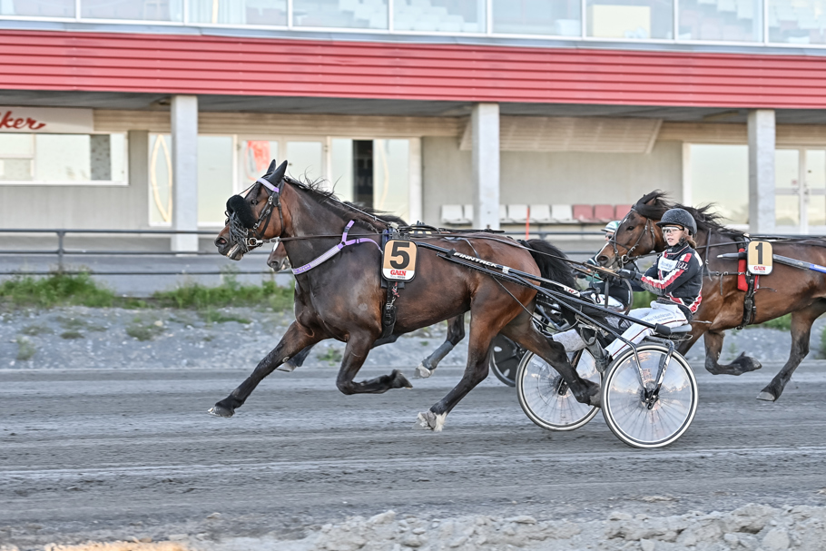 Lill Signe (Jill Ivarsson/Brage Hansen) var med som fjärde-femte häst på innerspår, men valde att gå ut som första häst i andraspår med ett och ett halvt varv från mål. Pressade på ledaren med 800 kvar och levererade en ny press i slutsvängen. Kopplade greppet och tog sin första seger på bra sätt före bra avslutande konkurrenter. Hauan Odin satt sist utvändigt och kom snabbt farandes mitt i banan till andrapriset. Kallsy kördes invändigt och fick chansen, avslutade bra till tredjeplatsen.