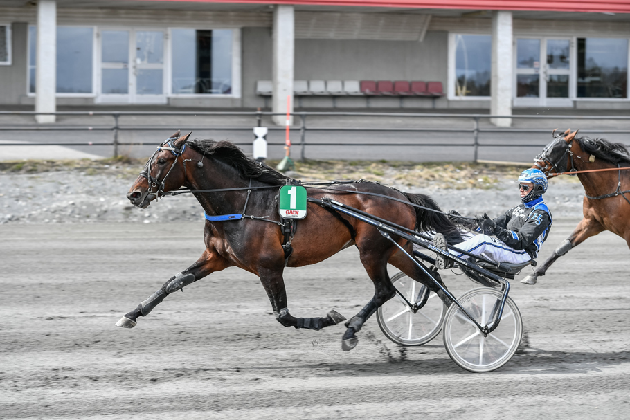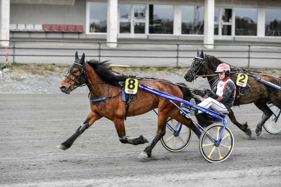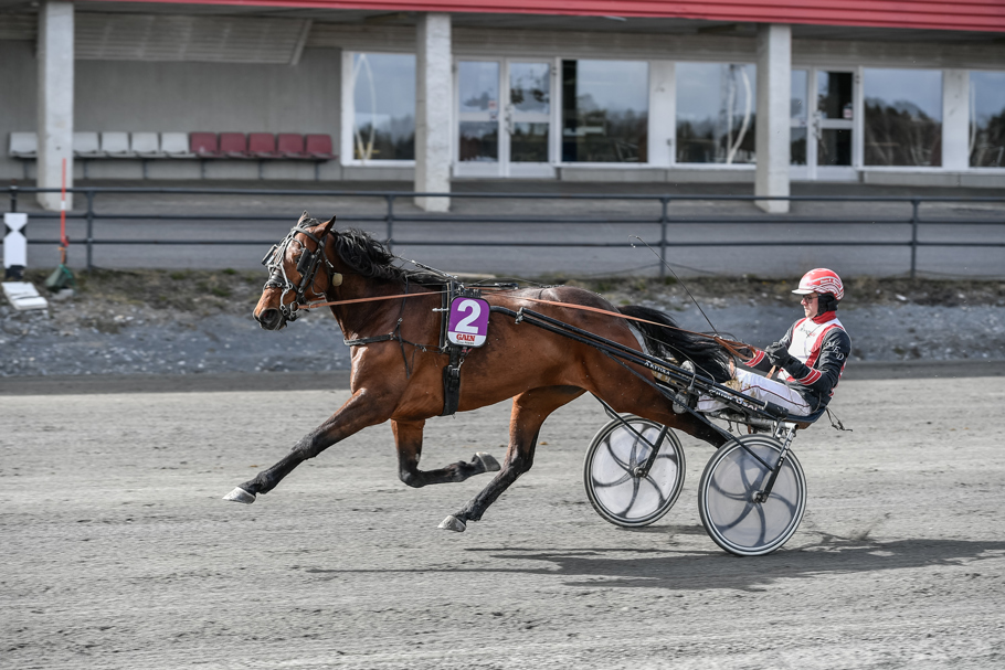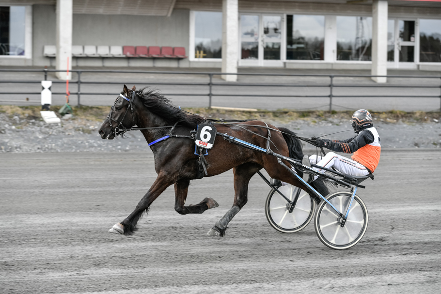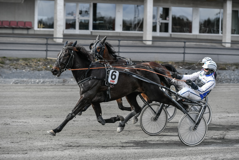 Ravn Kiro (Ove A Lindqvist/Jerker Bjurman) startade från dubbla tillägg och åt sig successivt allt närmare. Fick kontakt med ledarduon 1750 kvar. Gick fram som första häst i andraspår och kunde avgöra på upploppet när ledande Sundbo Grann galopperade. Andrapriset till Guli Tone från ledarryggen. En bra debut.