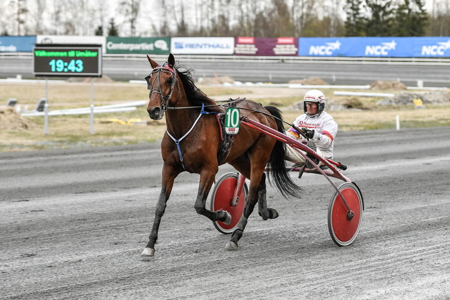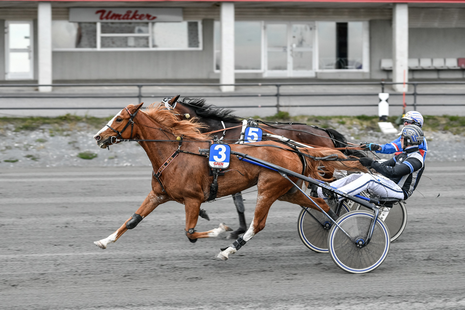 Gogobet Sisu (Jonny Länsimäki/Mika Haapakangas) tog hem försök 1 av Umåker Cup. Fick loppet i andra utvändigt. Attackerade på upploppet och kunde koppla greppet 100 kvar. Säkert. Front Pace tog hand om ledningen efter 400 körda. Nära att hålla hela vägen, men kunde inte försvara sig mot vinnaren sista biten. Power Swirl kördes i tredje invändigt. Tog sig ut dryga halvvarvet kvar och försökte haka på vinnaren, men fick nöja sig med tredjeplatsen.