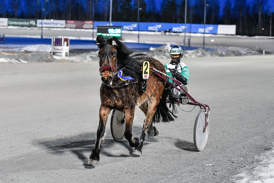 Armida F.B. (Veikko Haapakangas/Mika Haapakangas) öppnade snabbt och var direkt uppe i rygg på den ensamma hästen på start. Gick ut 650 kvar och lunkade till ledningen när de gick in i slutsvängen. Gick ifrån på bra sätt. Shake That Bubble kom fram som tredje häst och skuggade vinnaren, men kunde aldrig utmana. Crazyforareason Ås hamnade sist i kön, men avslutade bra till tredjeplatsen på avstånd från tätduon.