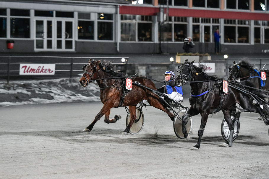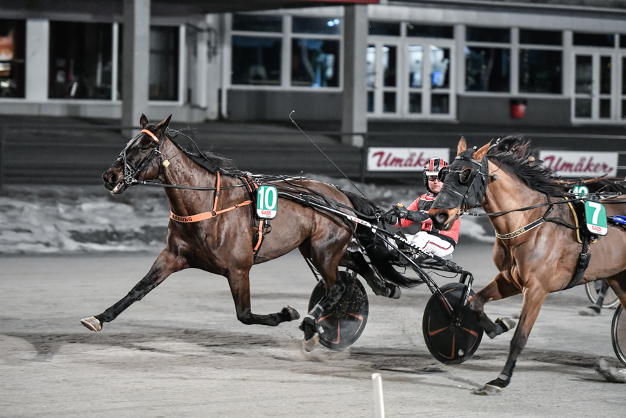 Wasa Thunder (Oskar Florhed/Aleksi Kytölä) fick loppet i tredje utvändigt. Drogs fram bra på baksidan och började jaga ledaren i slutsvängen. Hade en bit fram, men hann precis först till linjen. Special Promise inledde i andra utvändigt, men kunde överta ledningen 400 kvar och fick några längder. Såg ut att ha det under kontroll, men förlorade på målfoto. Västerbo Exclusive spurtade till tredjeplatsen från fjärde utvändigt.