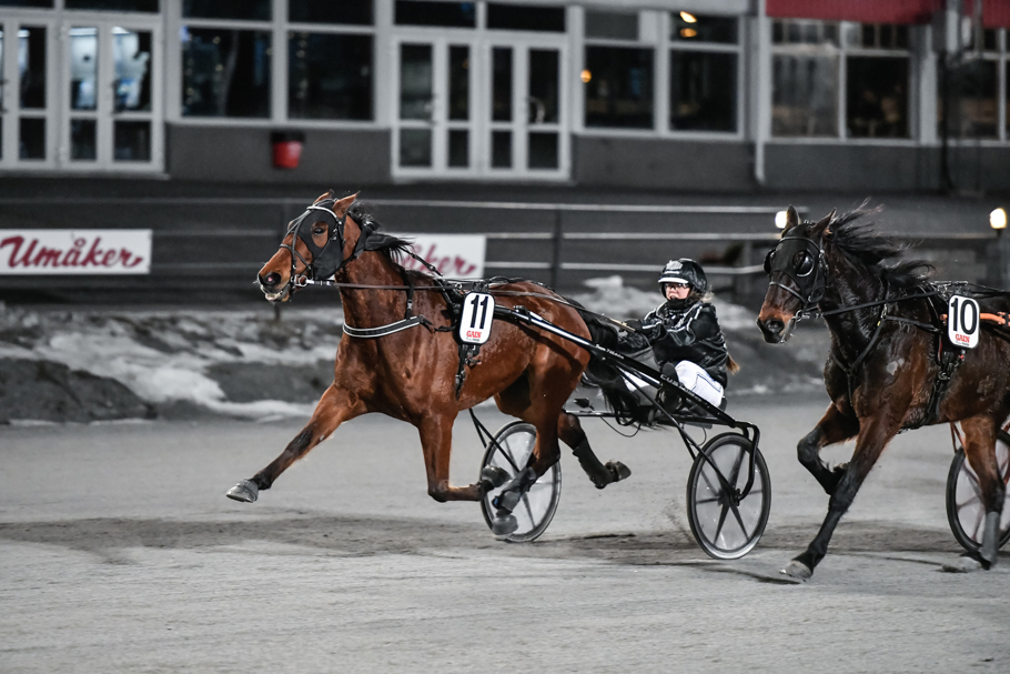 Cemonroc de Coeur (Mikael H Björklund/Erica Sandström) öppnade snabbast och tog ledningen, men fick släppa fronten med 1,5 varv till mål. Kunde gå ut i andraspår 600 kvar och pressa på ledaren för att överta i slutsvängen. Gick undan på bra sätt. Dillon Power och Lemmy kördes båda invändigt och fick luckan i slutsvängen. Bra avslut till andra respektive tredjeplatsen, utan att hota vinnaren.
