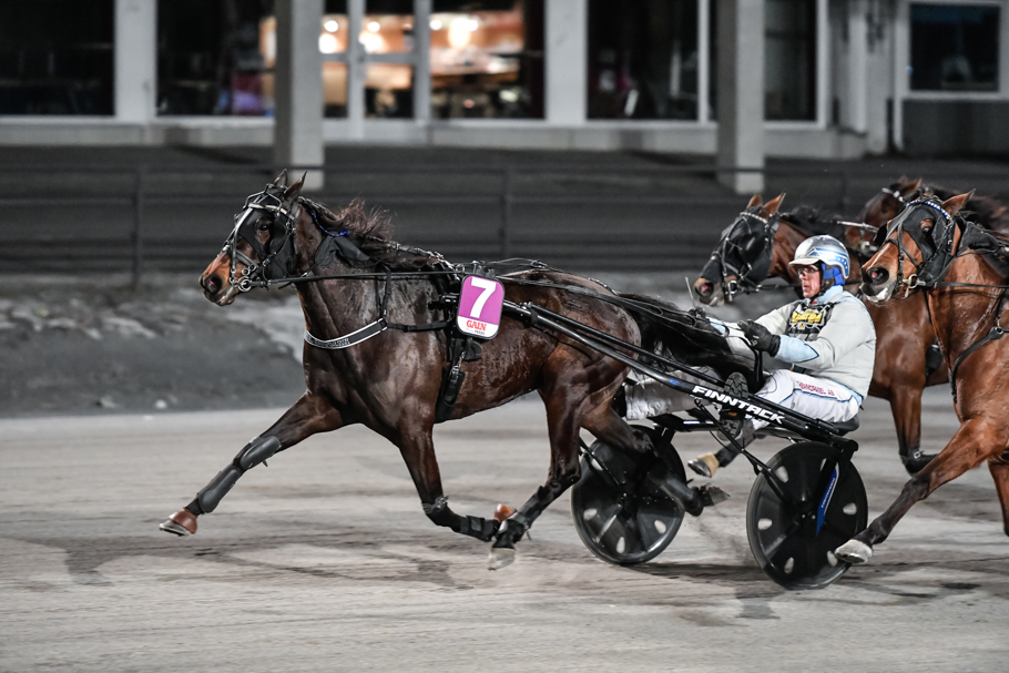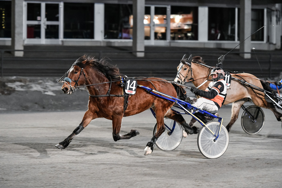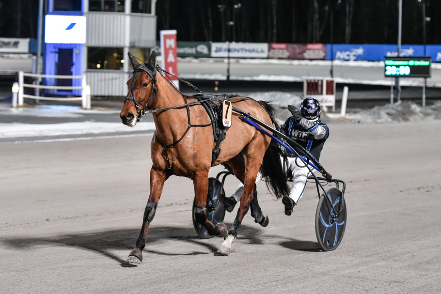 B.W.T.Devil (Veikko Haapakangas/Mika Haapakangas) hittade tredje utvändigt från bakspår. Gick på i tredjespår 600 kvar, men hade långt fram till den undflyende ledaren. Kämpade sig successivt närmare och kopplade greppet kort före mål. Zekrom Jons kördes till spets i första sväng och drog undan. Hade några längders försprång som utökades under slutrundan. Stumnade lite till slut och åkte dit sista biten. Gobo’s Uppercut fick göra jobbet utvändigt ledaren och kämpade bra till tredjeplatsen.