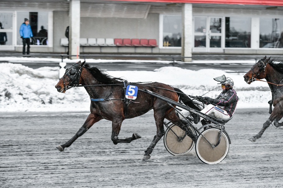 Magnifik Brodde (Samu Sundqvist/Ingemar Hultqvist) spetsade direkt och ledde sedan runt om till säker seger via ett snabbare sista halvvarv. Ohotad. Elit Håleryd liftade med till andraplatsen från ledarryggen. Kunde aldrig utmana, men svarade och höll undan för Mr Golden Quick som spurtade från kön till tredjepriset.