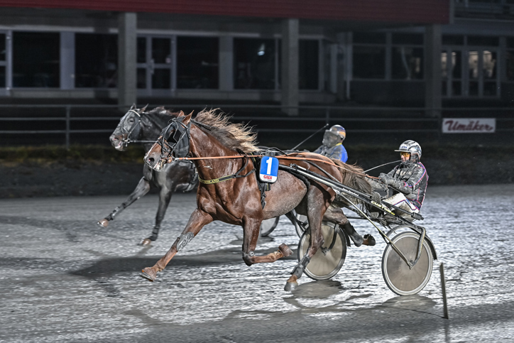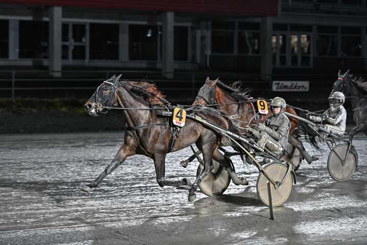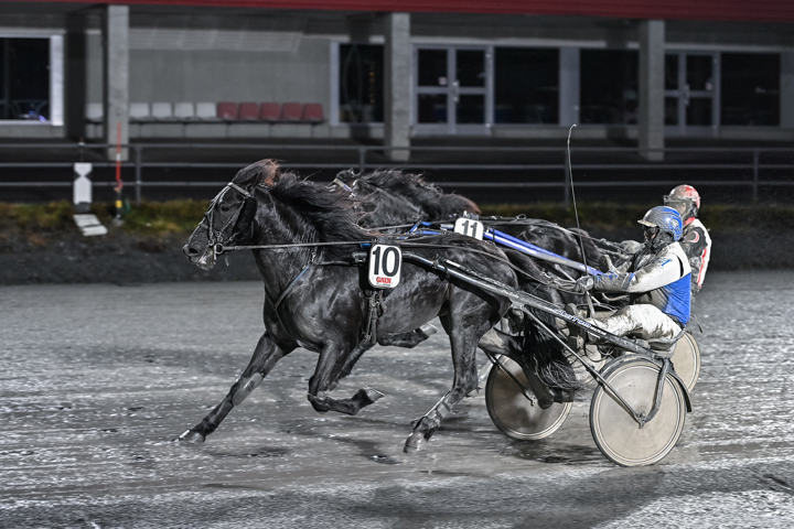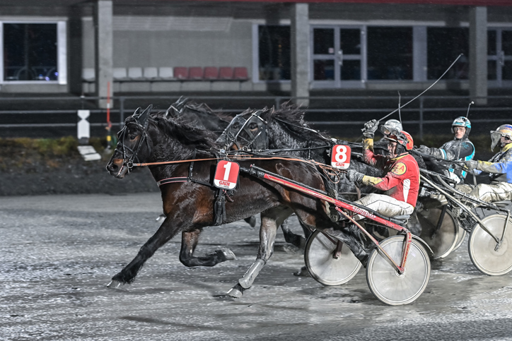 Fabian B.R. (Ulf Ohlsson/Aleksi Kytölä) kom igenom bra från bakspår till utvändigt ledaren. Kopplade greppet i slutsvängen och höll bra till segern. Starkt! Mellby Ess kom också igenom bra och fick rygg på vinnaren i andraspår. Försökte utmana, fick inget grepp, men bra ändå. Zooropa satt i tredje utvändigt, gick på 650 kvar och blev kvar i tredjespår. Höll till bronspengen.