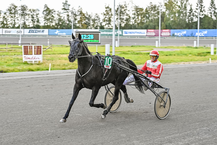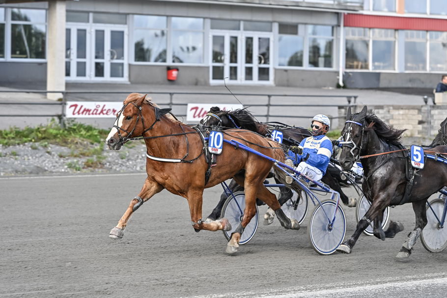 Emperor (Jan Norberg/Lena Johansson) var snabbast iväg, även om några försökte utmana var det aldrig något snack om vem som skulle ta ledningen. Sedan ledde den debuterande fyraåringen loppet runt om till en behaglig seger. T.Wall's Ironmaid försökte utmana om ledningen, men valde ledarryggen och hängde med till andraplatsen på bra sätt. Extra Västerbo inledde i fjärde invändigt, men gick ut som första häst i andraspår med varvet kvar. Försökte utmana, men kunde aldrig hota och blev trea.