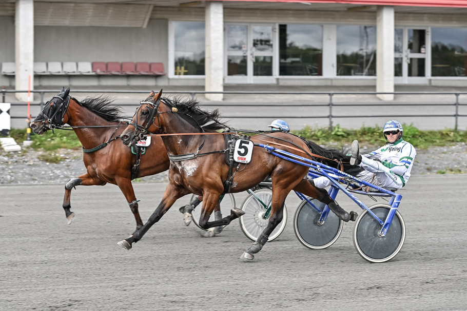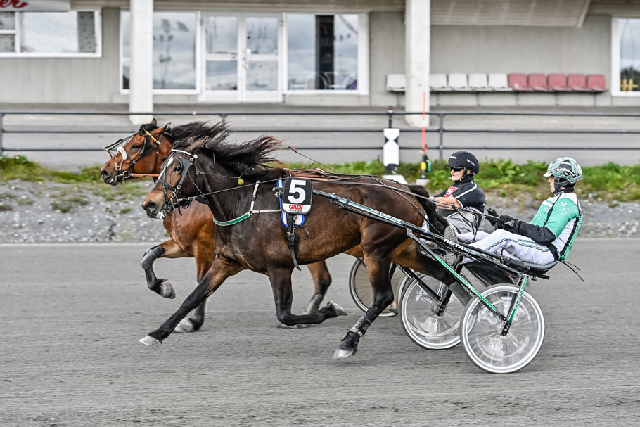 Dans Mysak (Fredrik Sahlén/Gunnar Kristoffersson) öppnade bra från tillägg och låg i andraspår, men blev först utan rygg med ca 1200 meter kvar. Fick slag på ledaren redan 500 kvar, men tog sig förbi först på upploppet och kunde hålla undan. Tåga Odin hamnade först utvändigt, men kunde överta lednigen med ett och ett halvt varv från mål. Utmanade sista halvvarvet, men kunde inte stå emot vinnaren. Rappjerv startade från dubbla tillägg och tog sig successivt framåt. Försökte på upploppet, närmade sig min hann inte fram.