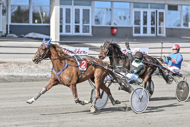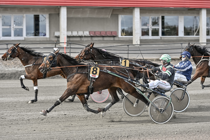 Emilie K. (Stefan Johansson/Aleksi Kytölä) placerades i andra utvändigt. Kunde vänta med att gå på till 650 kvar och då kom en rejäl långsida. Var utvändigt ledaren halvvarvet kvar och övertog ledningen i slutsvängen. Gick undan till en överlägsen seger. Wasa Windy avslutade bra från fjärde utvändigt till andraplatsen. Pretty Boy Floyd tog hand om ledningen i första sväng. Fick press halvvarvet kvar och kunde inte stå emot vinnaren i slutsvängen. Höll bra till tredjeplatsen.