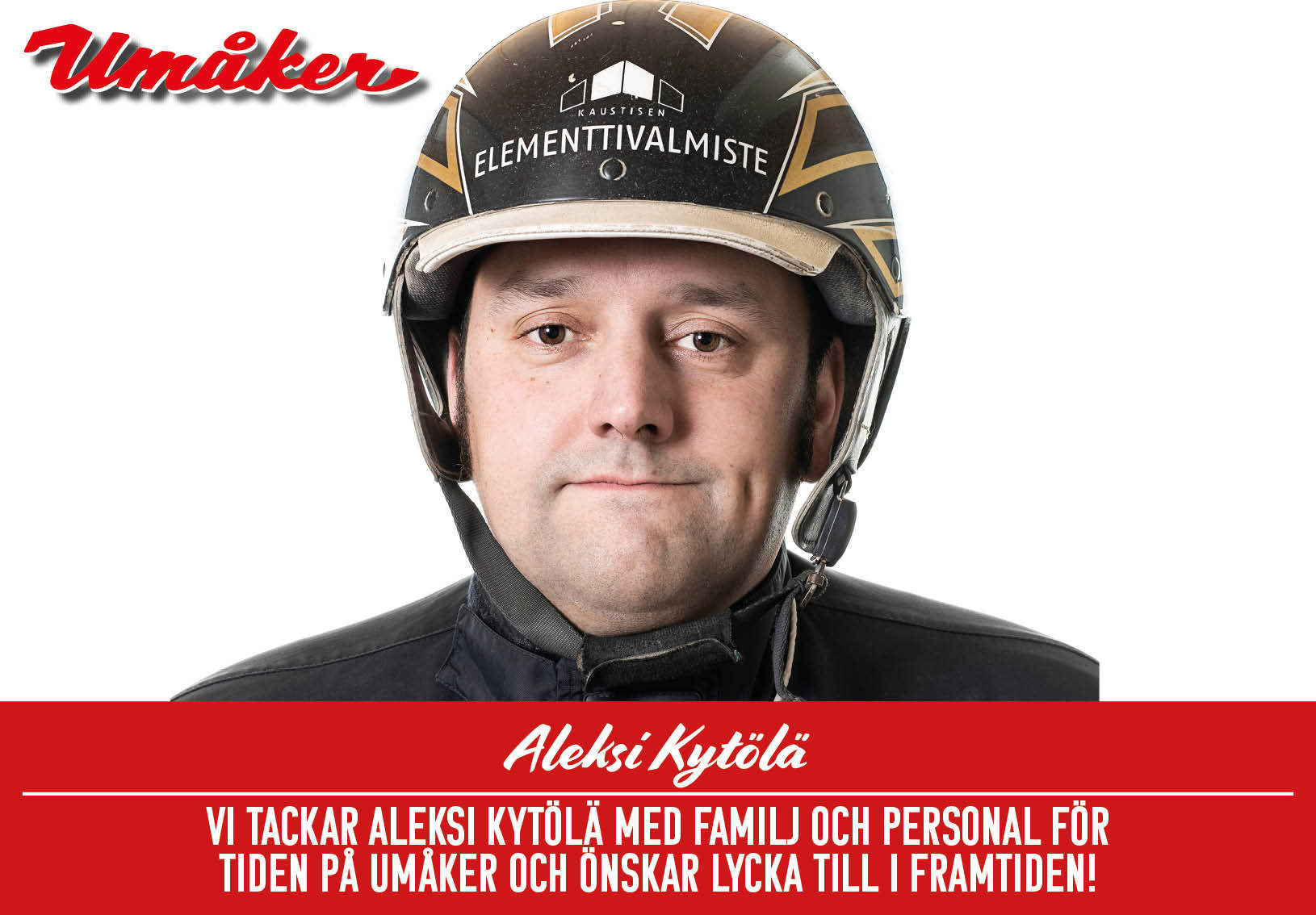 Aleksi Kytöläs hemlängtan har återfört honom till Finland efter några år hos oss. Kytölä, en duktig hästkarl, har med sitt glada humör och sitt flitiga startande varit en färgklick. Tack för din tid på Umåker Aleksi, och lycka till framöver.