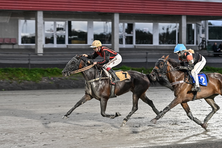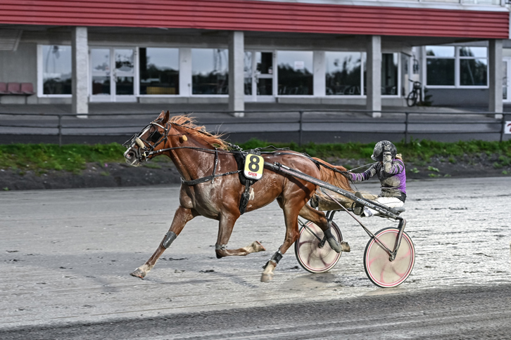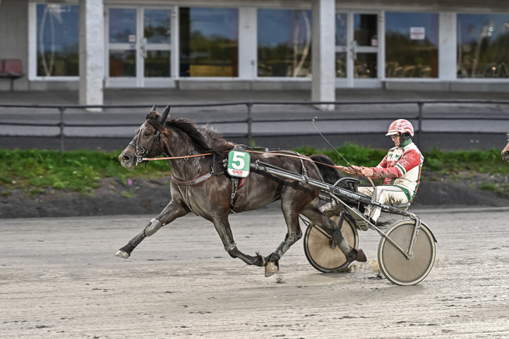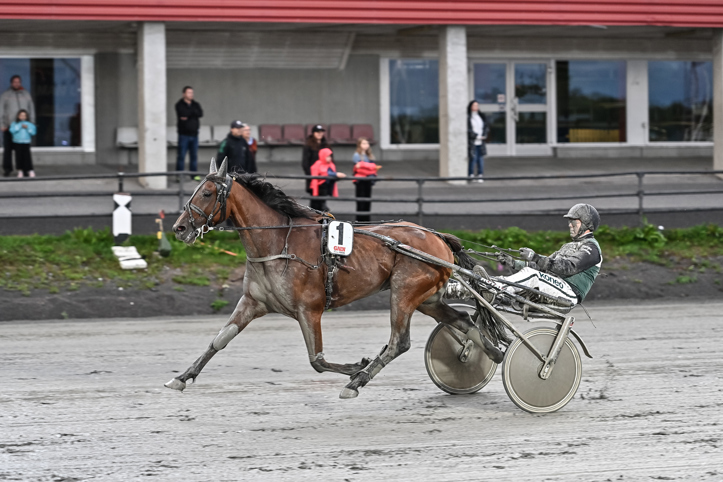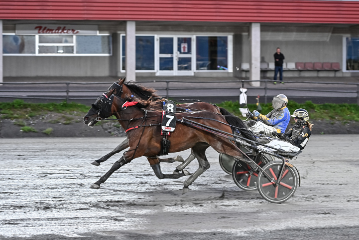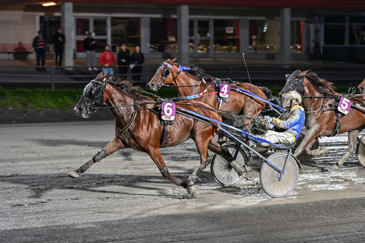 Glamour du Desert (Moa Fredriksson/Gunnel Fredriksson) landade i tredje utvändigt. Gick på via tredjespår 550 kvar och sköljde till ledningen i mitten av slutsvängen. Gick undan till överlägsen seger! Hercules Star fick ett lopp nere i kön, men levererade en mycket vass avslutning till andraplatsen före stallkamraten Blackie Lawless som kördes i ledningen. Han hade dock inget svar när vinnaren kom susandes.