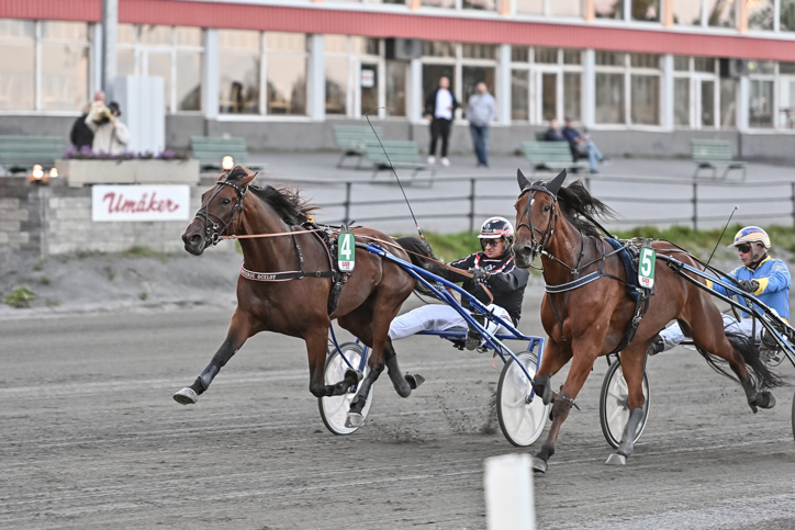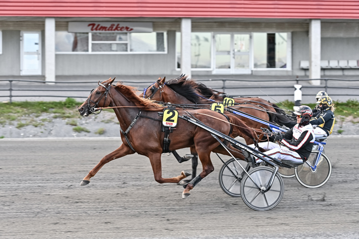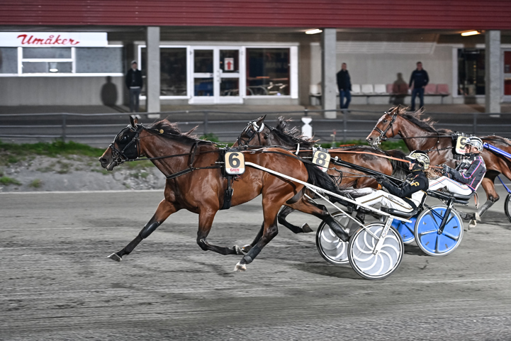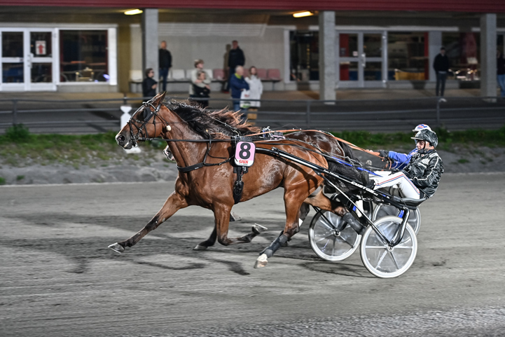 Juno Beach (Sandra Eriksson/Marie Anglöw) kördes till ledningen. Öppnade upp halvvarvet på 1.14,7 för att varva på 1.14,6. Blev utmanad, men gick undan till seger med en längd på fina 1.13,8. Edima kördes fram utvändigt ledaren. Utmanade, men fick aldrig något grepp på vinnaren. Mycket bra som tvåa. Grit Brodda satt i tredje utvändigt. Gick på i tredjespår dryga halvvarvet från mål och avslutade bra till tredjeplatsen.