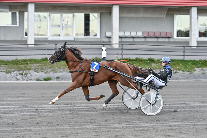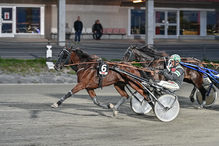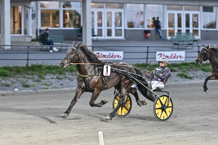 Oneiric Ocelot (Benny Christensen) kördes fram , blev tredje utvändigt. Gick på 850 kvar och svepte fram utvändigt ledaren. Pressade och det blev en upploppsduell, men Oneiric Ocelot kunde koppla grepp kort före mål. Stark insats. Titleist hamnade utvändigt ledaren inledningsvis, men kunde pressa sig till ledningen efter ett halvvarv som öppnades på 1.12. Blev pressad av vinnare och svarade ärligt hela vägen, men fick ge sig precis innan linjen. Axel Palema öppnade snabbast och kunde försvara innerspåret, men fick släppa fronten vid en snabbt halvvarvspassering. Hakade på bra bakom tätduon till en tredjeplats.