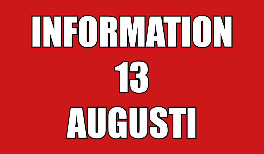 INFORMATION TILL PUBLIK OCH RESTAURANGGÄSTER 13 AUGUSTI!