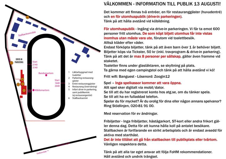 Fribiljetter - Inga fribiljetter, hästägarkort, ST-kort eller andra frikort gäller denna dag. Detta för att kunna hålla koll på antalet besökare.