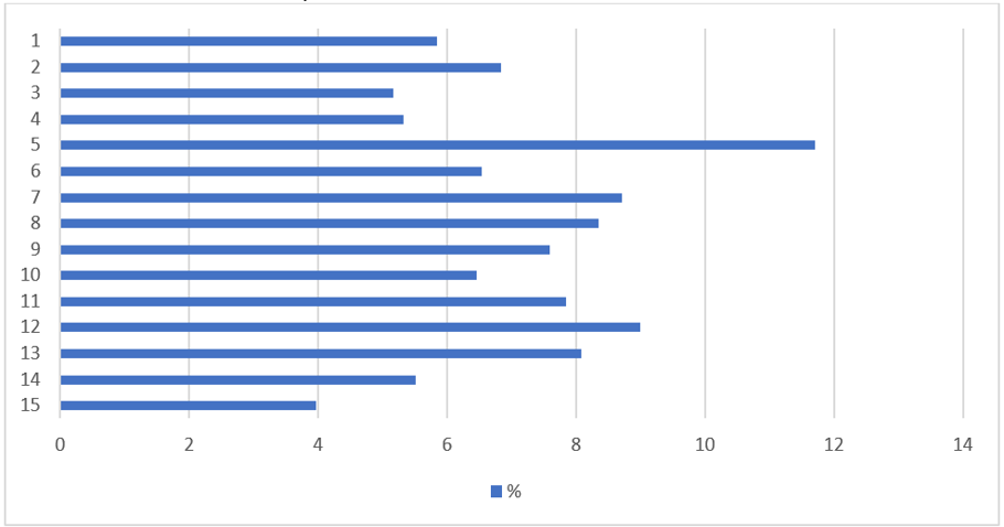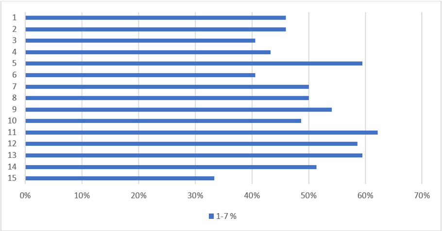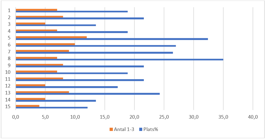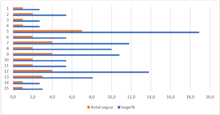 Lägst procent hade 4% och det var den enda som låg under 10%.