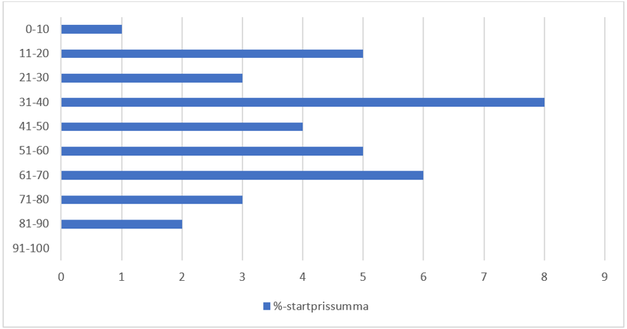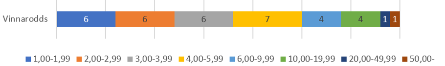Hälften av vinnarna låg i den ”mellersta tredjedelen” (33-67%). Noterbart var att lägsta tredjedelen slog den högsta tredjedelen med 11-7.