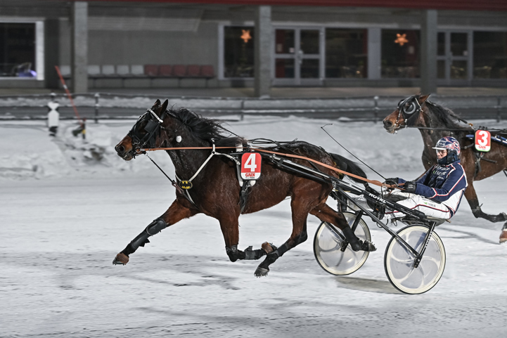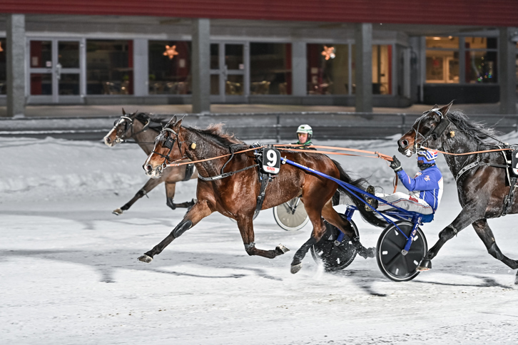Järvsö Nilsingemar (Micael Melander/Tiina Koskinen) kördes till ledningen efter 400 meter. De blev utmanade genom slutsvängen och upploppet ner, men svarade ärligt hela vägen till första årssegern. Wilde togs lugnt från sitt utgångsläge med bakspår på tillägg. Smög fram i något som sedan blev andra utvändigt och till slut först utvändigt efter en framförvarande galoppör. Gick i närkamp med ledaren genom slutsvängen och in på upploppet, men fick aldrig grepp. Tapper tvåa. Björnemyr Ludvig galopperade direkt i starten och tappade en hel del position. Kom tillbaka till tredje utvändigt, vilket blev andra ut efter ett varv. Försökte i tredjespår på upploppet, men kom aldrig närmare tätduon.