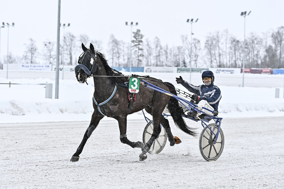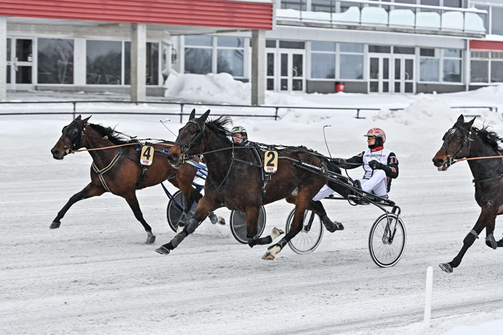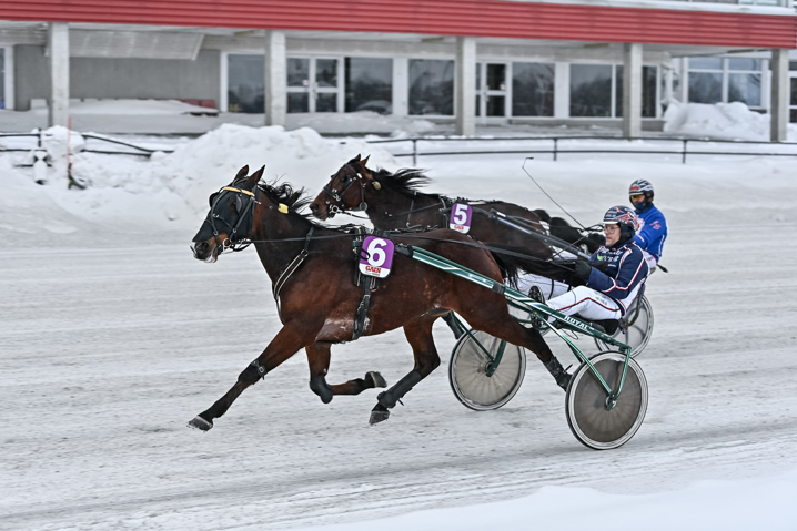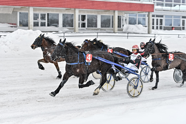 Xtra G.T. (Tino Lindström) kunde inte vara med i öppningen och hamnade nere i kön. Gick på i slutsvängen och levererade ett rykande upplopp. Hann fram till säker seger. Grym avslutning! Affair Amok kom iväg som tredje häst och klev ut som första häst i andraspår när de fyllde på bakifrån. Kämpade åter starkt till en andraplats. One For You öppnade raskt till ledningen. Höll bra, men kunde inte stå emot attackerna till slut och fick nöja sig med en tredjeplats.