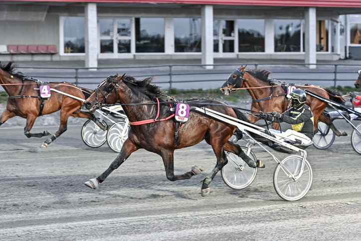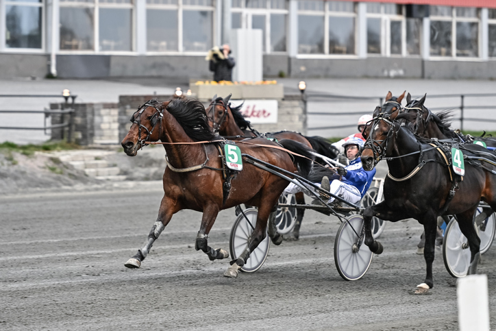 Incase of Fire (Rikard N Skoglund/Joakim Elfving) tog sig ner på innerspår som tredje häst, men valde att gå ut som första häst i andraspår 1300 kvar. Pressade på ledaren och kunde koppla grepp mitt på upploppet. En mycket vass insats! Borups Victory spetsade på två steg och fick bestämma tempot till 1.15,0 första halvvarvet för att varva på 1.18,7. Kunde dock inte stå emot vinnaren på upploppet. Idomenio Sisu togs lugnt från start, men gick på som första häst i andraspår med 1500 meter kvar och fick rygg kort senare. Kämpade på bra till tredjeplatsen.