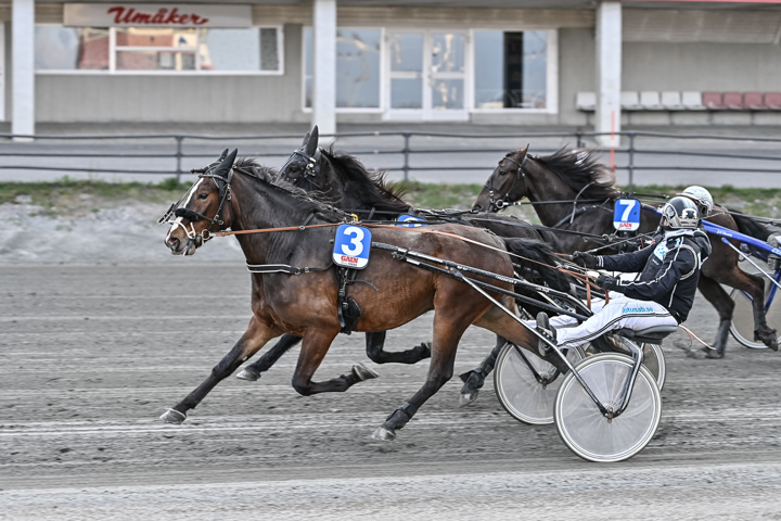 Stabilizer (Ulf Ohlsson/Markus Pihlström) inledde som tredjehäst, men valde tidigt att ta positionen först utvändigt. Satte press på ledaren under slutrundan och kunde koppla greppet 100 kvar på upploppet. Stabil seger. Elsa Zonett kördes till ledningen och fick bestämma till 1.19,1 på varvet. Fick press och stod emot bra, men fick ge sig på upploppet. Off Road Honey tog sats från kön 1250 kvar och blev kvar i tredjespår. Kom ner i andra utvändigt 800 kvar och kämpade på bra till tredjeplatsen.