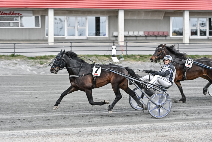 Supersprint! Wasa Warrior (Rikard N Skoglund/Aleksi Kytölä) tog positionen i andra utvändigt. Kunde gotta sig och vänta med att gå på i tredjespår 350 kvar. Utmanade ledaren på upploppet och kopplade segergreppet i god tid före mål. Segertid 1.10,9. M.T.Insider dundrade till ledningen och öppnade 500m på 1.08,2. Blev utmanad på upploppet, men kunde inte svara vinnaren. Sambucus P.R. öppnade raskt, men fick ta rygg på ledaren och blev fast därbakom.