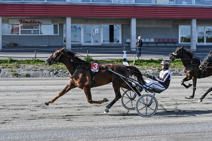 Hornnes Tore (Sandra Eriksson) tog rygg på ledaren som höll ett bra tempo, 1.29,9/500m och 1.28,8/100m. Sedan galopperade ledaren på upploppet och det blev raka spåret mot segern för Hornnes Tore som tog karriärens andra seger på säkert sätt. Sindys Tove kördes invändigt i femte-fjärde invänditg. Kunde ta sig ut i andraspår 700 kvar. Ner invändigt i slutsvängen och fick luckan 150 kvar och avslutade bra till andraplatsen. Gosens Titana stod ensam på start och tog också hand om kommandot direkt. Såg stark ut, men galoppen kom när de svängde in på upploppet. Tappade en del, framförallt position, men kom tillbaka ute i banan till tredjeplatsen.
