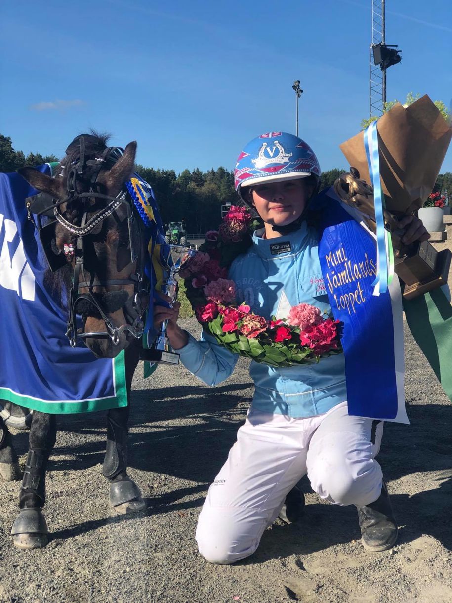 I lördags var det ponnytävlingar i Östersund och vi hade två umåkerekipage på plats. Vendela Lång hade ställt iordning sin Pollypuff på bästa sätt inför Mini Jämtlands-loppet. Resultatet blev en seger med många längder på det nya voltrekordet 2.20,5. Vi säger stort grattis till kretsen runt superponnyn Pollypuff!