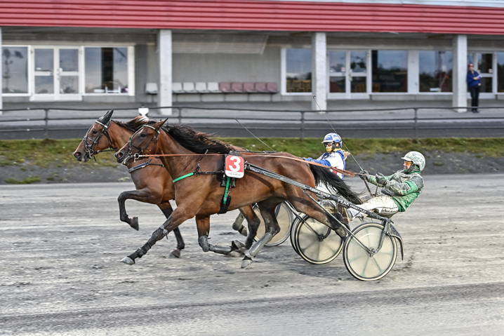 Bottnas Impuls (William Strand/Lena Åström) tog rygg på ledaren och följde med i draget. I slutsvängen började Strand leta sig ut i slagläge och kom med bra fart in på upploppet. De kopplade segergreppet i god tid före mållinjen.