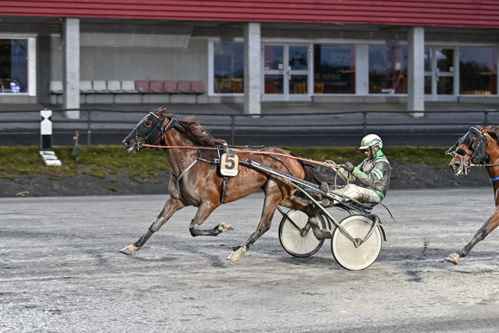 Il Capitano Mearas (Samu Sundqvist) öppnade bra, men fick släppa ledningen in i första sväng. Följde med ledaren till 250 kvar när luckan kom. Då sprintade han undan till en säker seger. Bra debut i ny regi.
