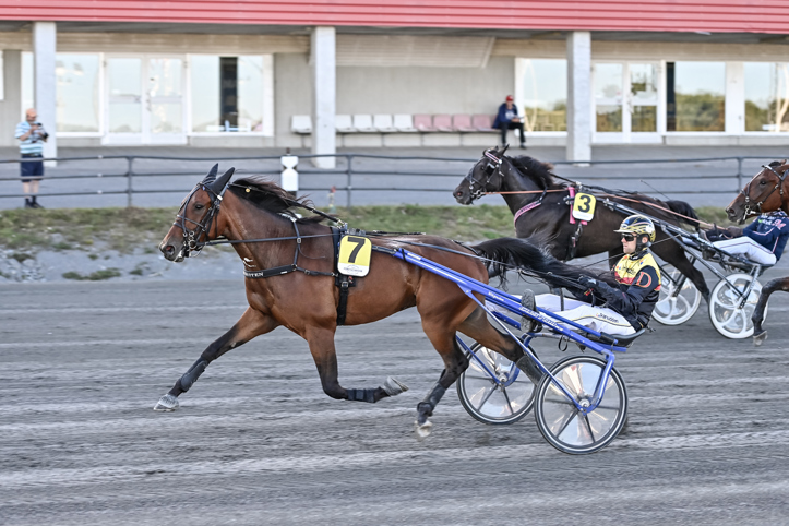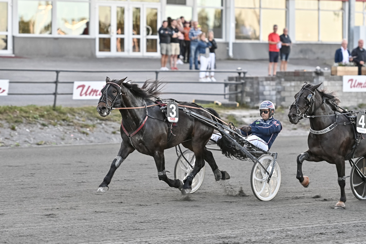 Frihet (Mats E Djuse/Daniel Wäjersten) kördes till ledningen efter ett halvvarv som öppnades på 1.16,9. De fick dämpa till 1.19,9 på varvet. Sedan drog de undan på slutrundan och fick en lite lucka. De avslutade bra bakom, men hann aldrig fatt på Frihet som vann säkert.