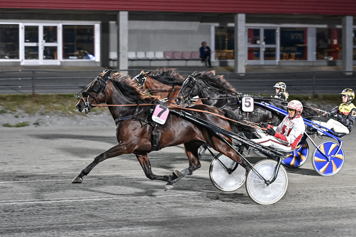 Burn Notice (Roger Nilsson) var ensam på startfållan och tog programenligt hand om ledningen. Fick öppna 1.20,4/500, men ökade sedan till 1.17,2/1000. Det blev en tuff upploppsduell mot Juan Sisu och Burn Notice såg slagen ut, men kontrade och höll undan till segern. Härlig inställning!