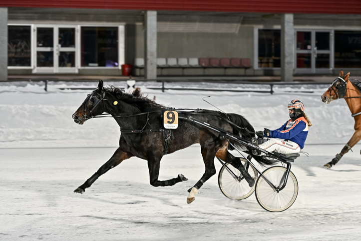 Emperor (Malin Viklund/Lena Johansson) satt som andra häst i andraspår, men lååångt ner i fältet. Attackerade i tredjespår 700 kvar och levererade en mycket snabb långsida. Gick utvändigt ledaren i slutsvängen och kopplade greppet på upploppet. Bra insats.