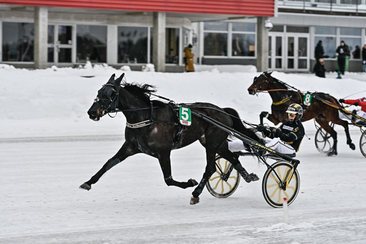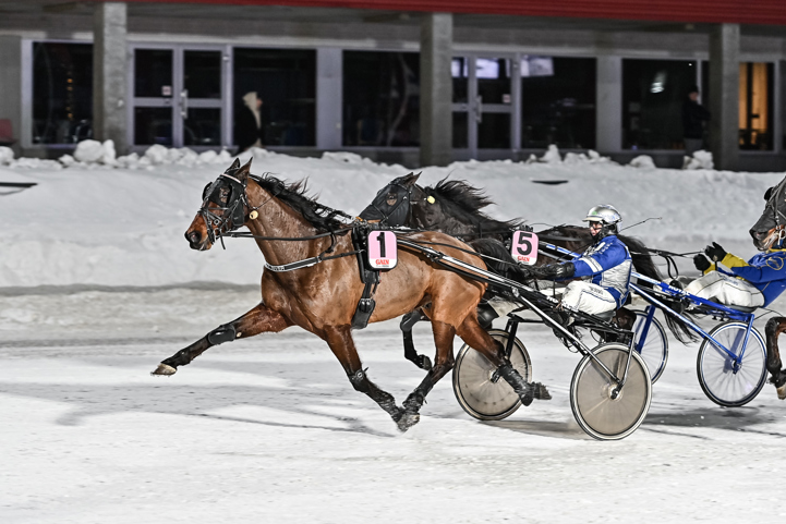 Dizzy River (Jenny Engfors/Micael Ågren) fick inleda loppet med att ta rygg på ledaren. Kunde ta sig ut i andra utvändigt 700 kvar och sedan attackera via tredjespår genom slutsvängen. Inne på upploppet kopplades greppet 100 kvar.