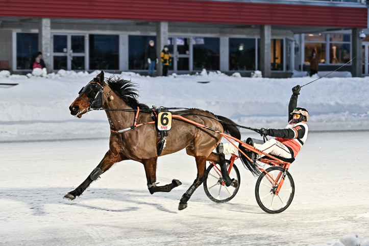 Enjoy's Wifi (Ove A Lindqvist/Maria Vikström) passade på att ta andra raka segern här på Umåker. De inledde som sjunde häst, men tog sig fram till andra utvändigt. De hann ner i tredje invändigt en bit, inan de gick ut i tredje utvändigt. Ove kunde vänta till upploppet med att sätta in attacken och då avgjorde han enkelt till säker seger över den långa distansen.
