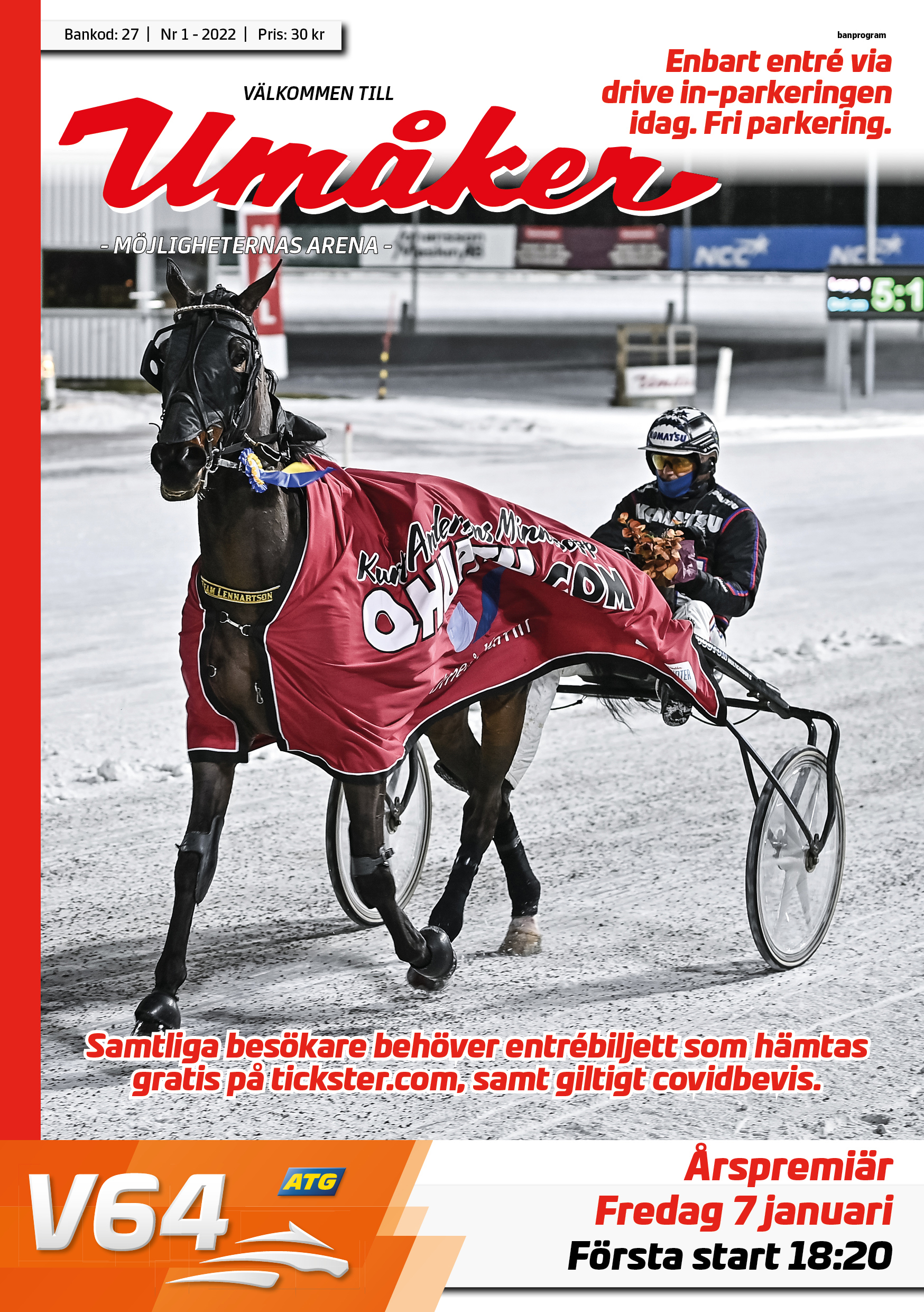 Ikväll är det årspremiär på Umåker med tio lopp. Vi har bl.a. spel på V64® med en jackpot som förväntas ha 6 miljoner i sexrättspotten. Tävlingarna körs på en vinterbana.