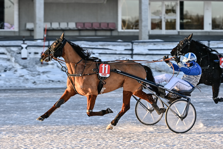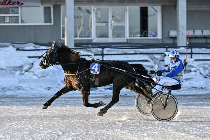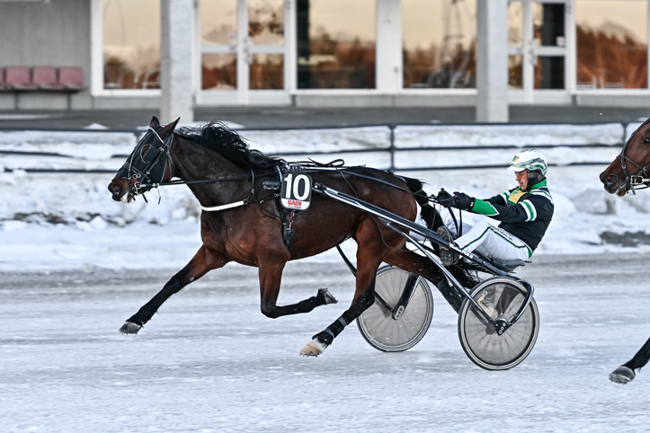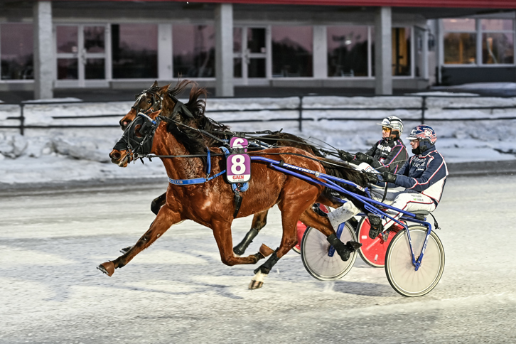 Eldar (Samu Sundqvist/Emma Jonsson) inledde med en galopp kort efter start. Anslöt sedan som fjärde och sista häst i andraspår. Skulle gå på i tredjespår 900 kvar, men galopperade på nytt. Kom tillbaka igen och attackerade via tredjespår i slutsvängen. Spurtade piggt och kopplade tidigt segergreppet!
