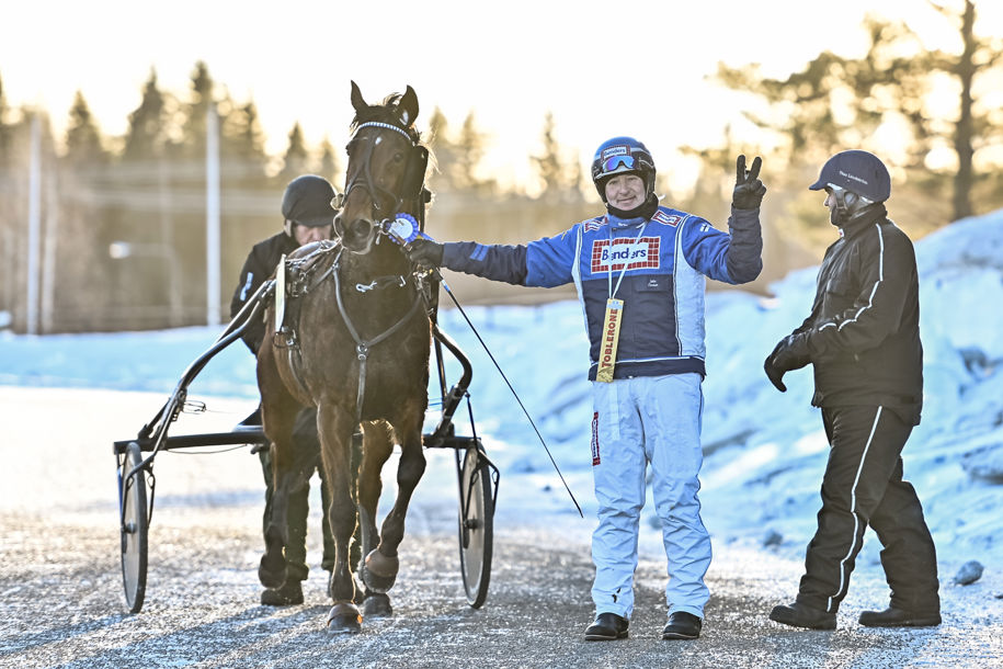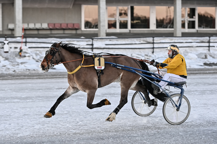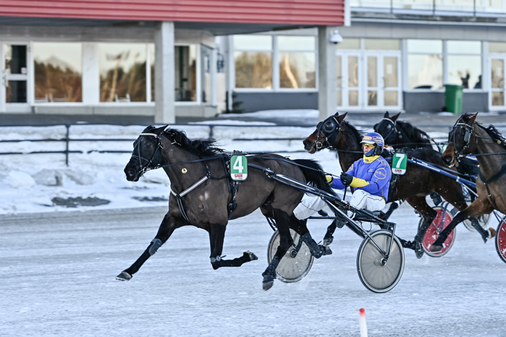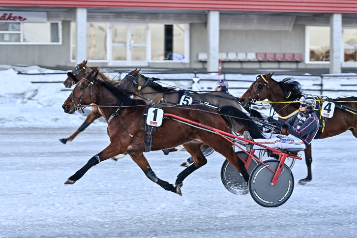 Jerome di Quattro (Samu Sundqvist) kördes "in i gröten" från sitt bakspår och fick andra utvändigt. Med drygt två varv kvar blev han först i andraspår. Tog sig fram utvändigt ledaren och masserade denne under slutrundan. Kopplade grepp direkt när de svängde in på upploppet.