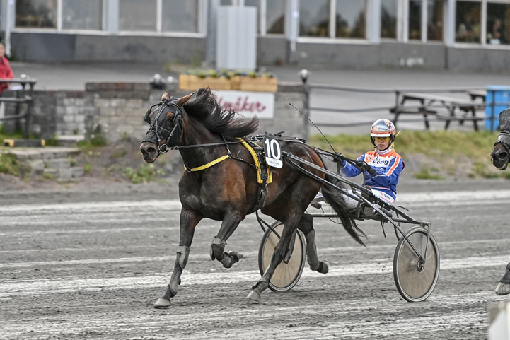 Chocliq Bishop (Malin Viklund/Anna-Carin Sandberg) startade från bakspår, men kom igenom bra och kunde krypa ner i ledarryggen. Luckan kom och hon kunde spurta till en målfotoseger.