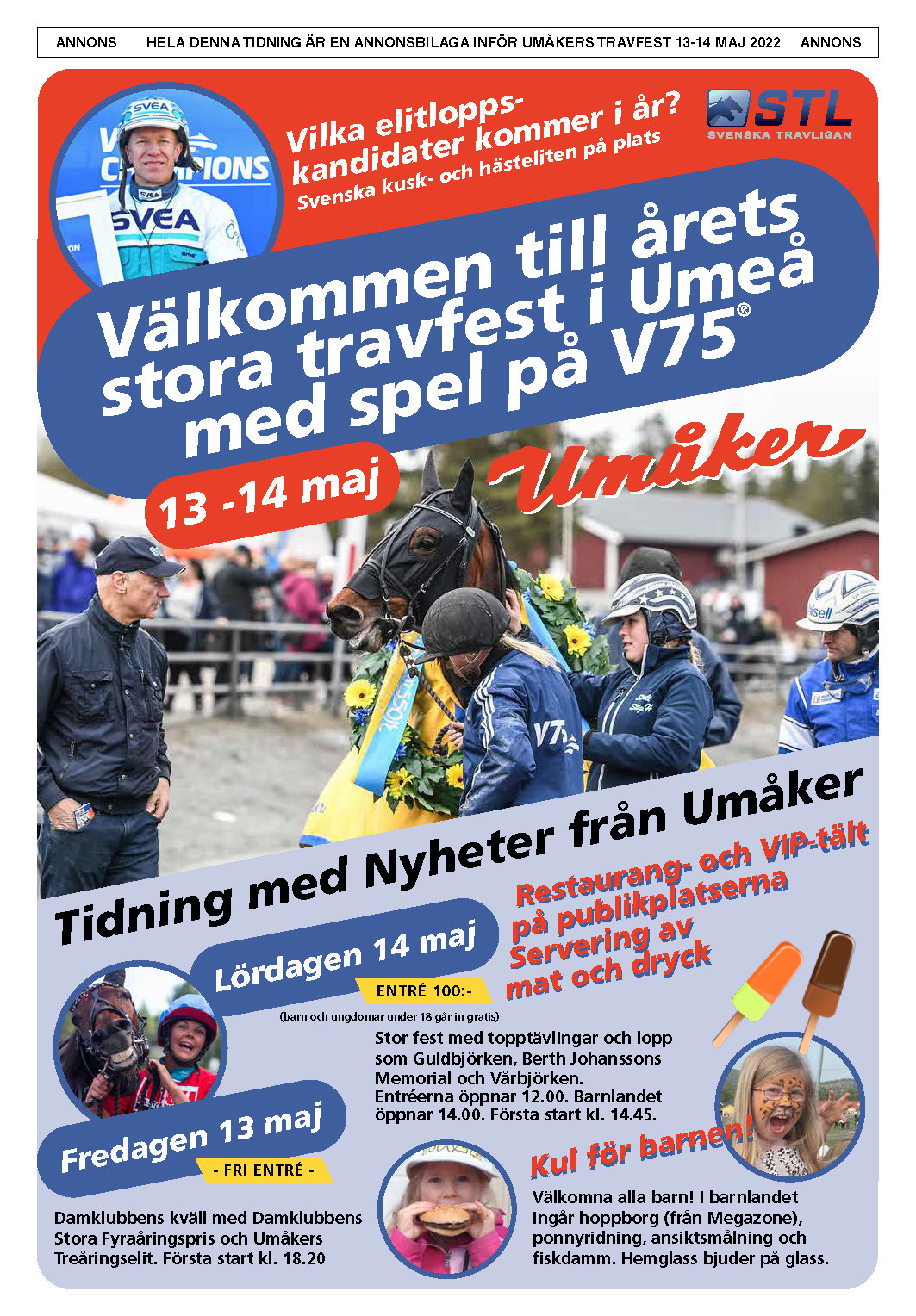 Här kommer vår bilaga inför den stora travfesten på Umåker! Mikael Wikner har producerat artiklar och Mats Utter har sålt annonser. Ni som prenumererar på VK eller Folkbladet får den i brevlådan idag. Vi kommer att försöka sprida ut den till ATG-butiker och den kommer att finnas på Umåker.