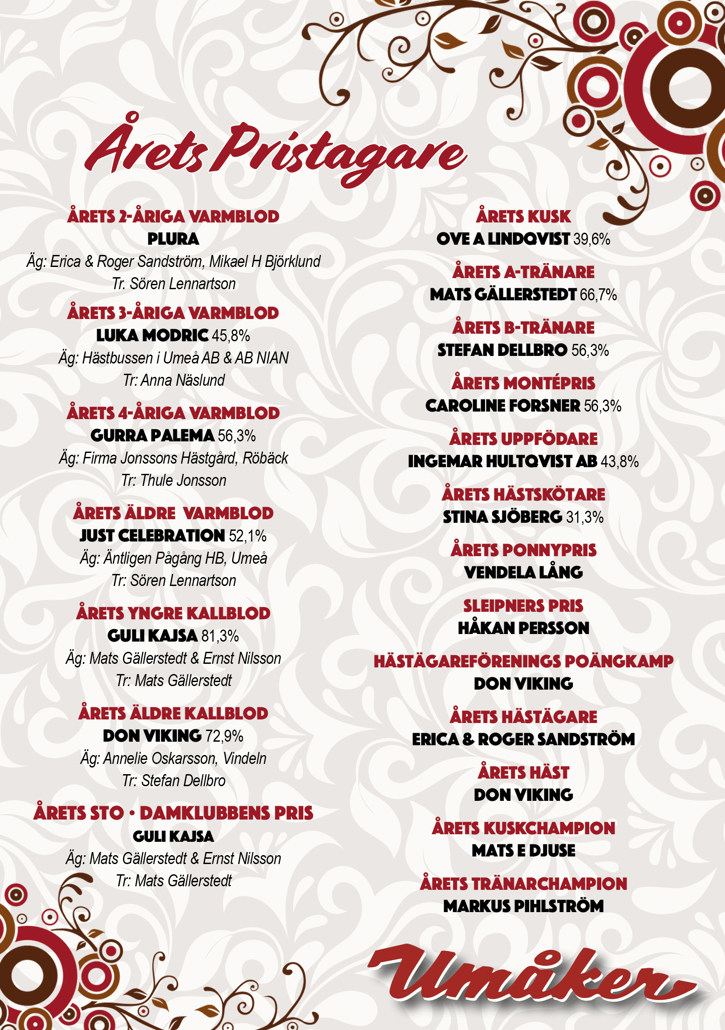Här kommer kvällens pristagare från "Årets Prisutdelning" som varit på Travrestaurangen.