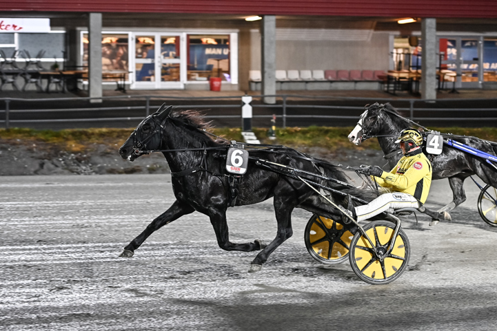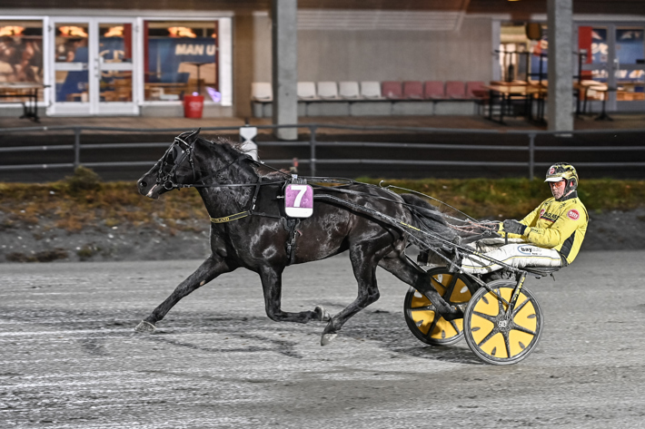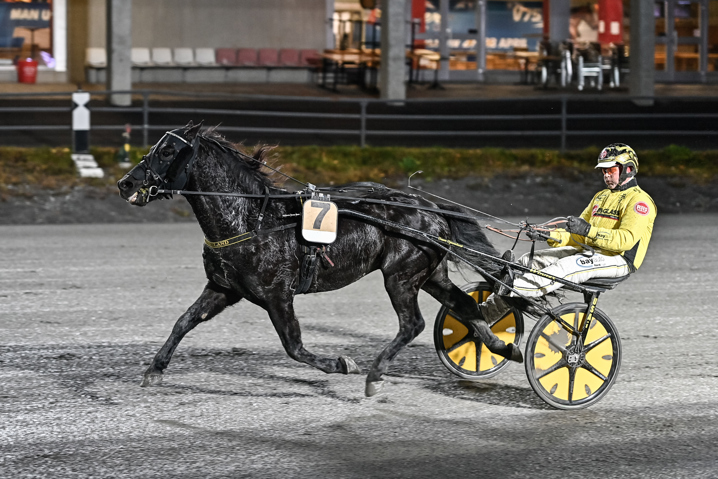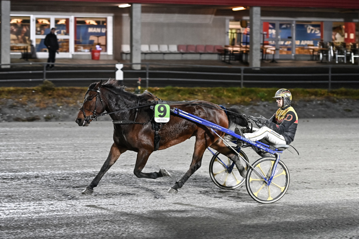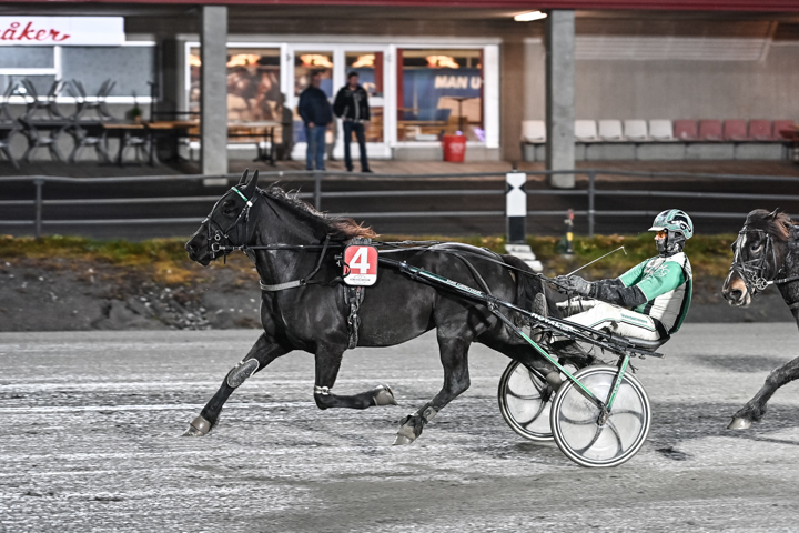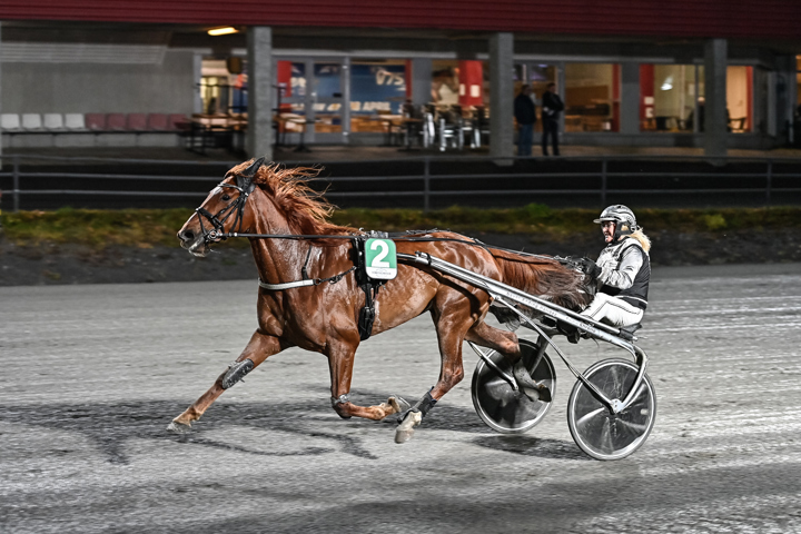 Grisle Odin G.L. (Öystein Tjomsland) fullbodade ett äkta hattrick för Öystein Tjomsland. Sladdade lite nere i kön tills attacken sattes in 700 kvar. Då gick det undan, men han blev kvar i tredjespår hela vägen. Mitt på upploppet kopplades greppet. Rå insats på nytt banrekord.
